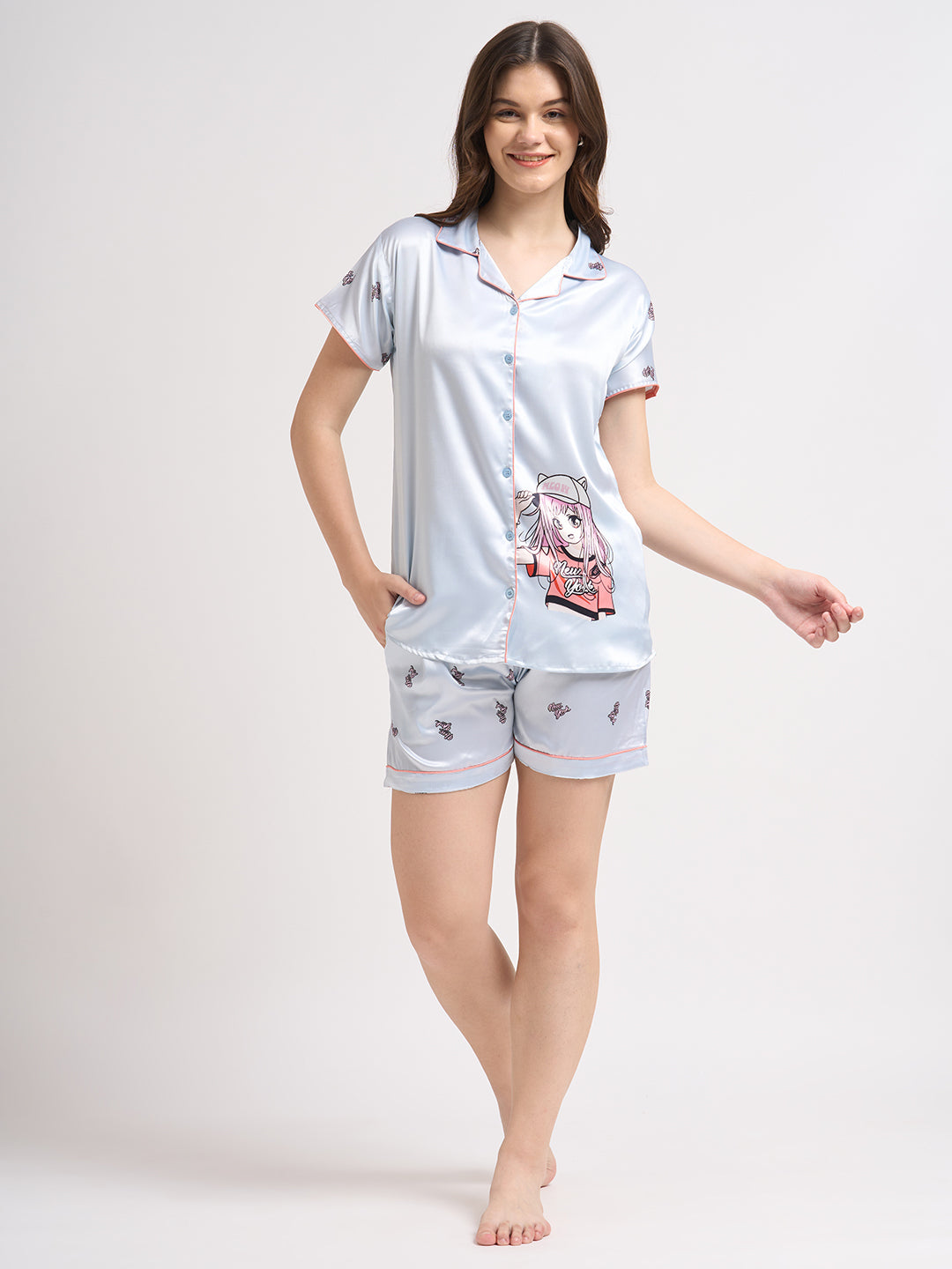 Cap-On Dreamer - Silky Lounge Night Suit
